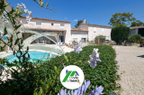 Grange, Jardin arboré avec un accès conche, belle piscine avec dôme et grand préau terrasse.