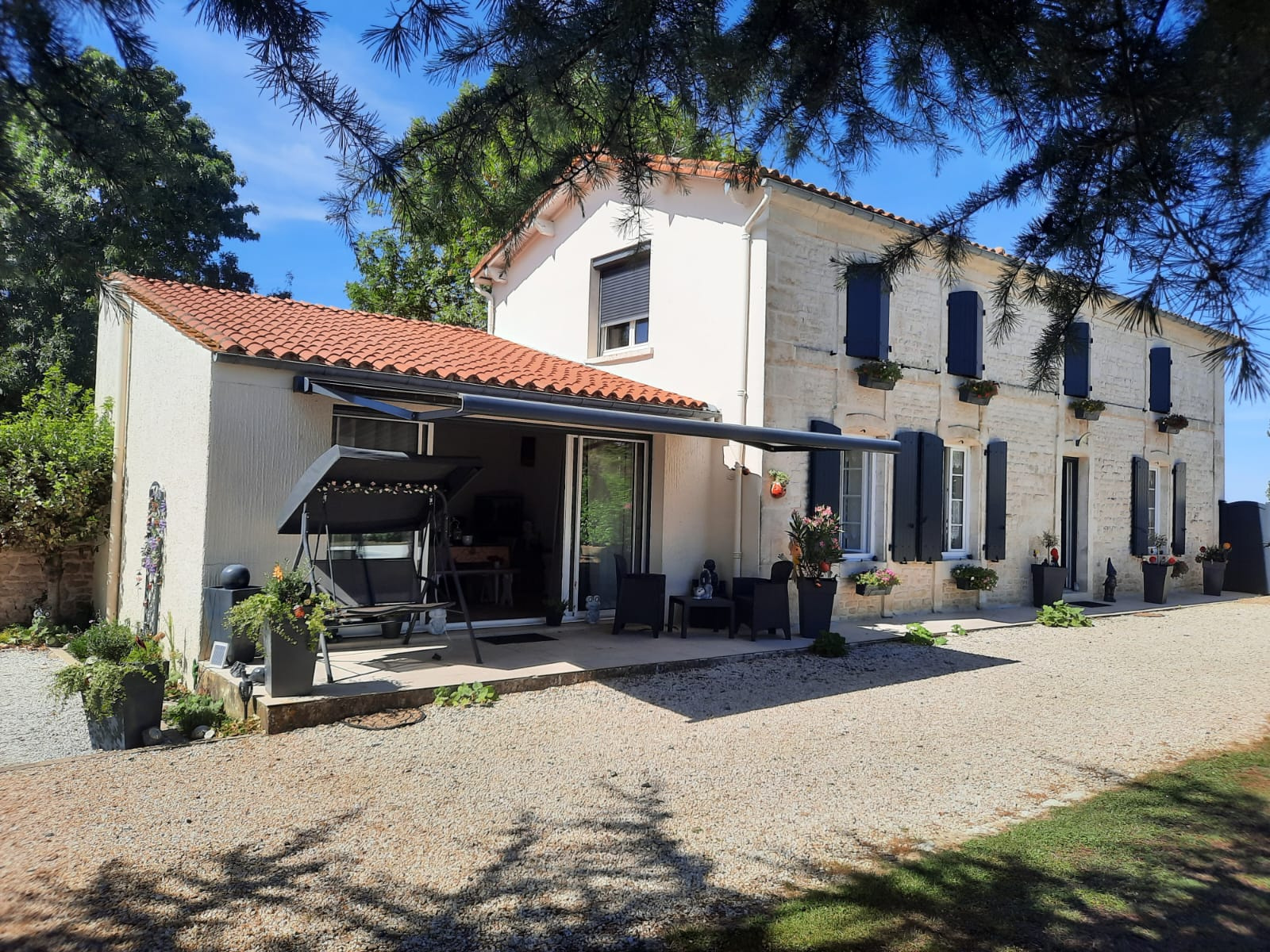 Les + : Volets et porte d'entrée en aluminium, fenêtres PVC en double vitrage, insert à pellet, portail aluminium motorisé, assainissement individuel aux normes.