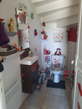 A l'étage : Palier-bureau, trois chambres, wc indépendant, salle d'eau/italienne.