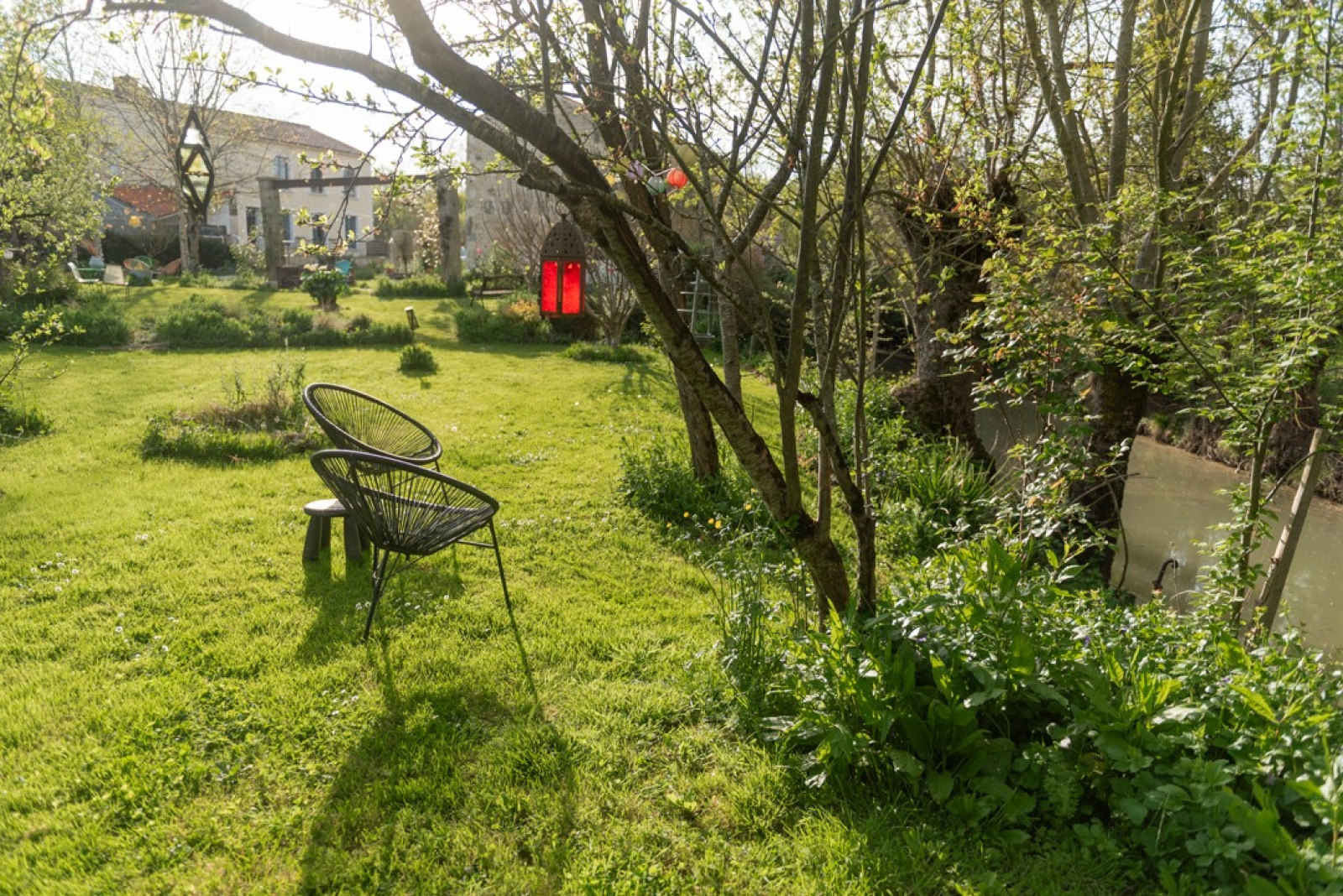 Jardin arboré en bord de conche, idéal pour rejoindre le canal de la Vieille Autise en barque pour de belles ballades.