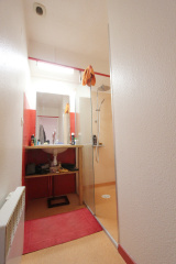 A l'étage : palier donnant sur 2 belles chambres et salle de douche avec vasque et toilettes. Ce bien est loué 594.5€ net plus 16,5 € de charges (OM).