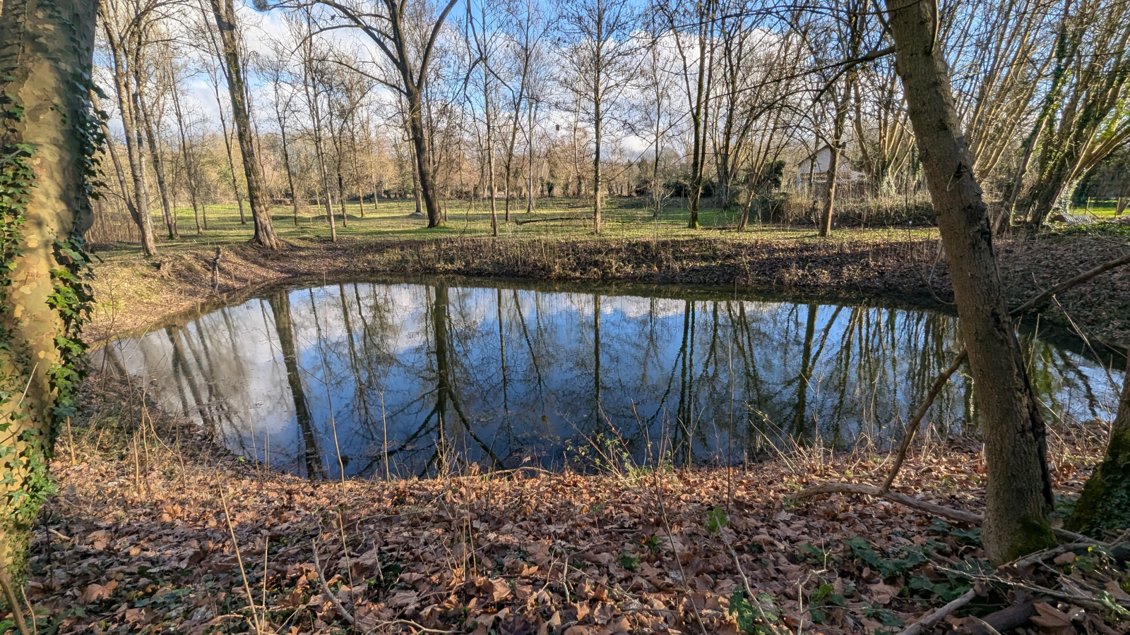 Lieux de détente et de pêche à proximité (le terrain en arrière se situe au niveau d'une réserve de pêche, interdiction de pêcher)