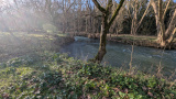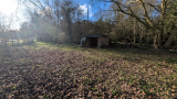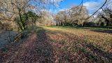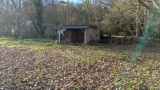 Proche rivière, le terrain se situe dans un écrin de verdure et d'eau, avec un préau et son âne.