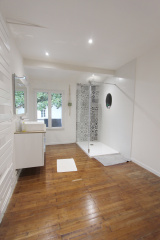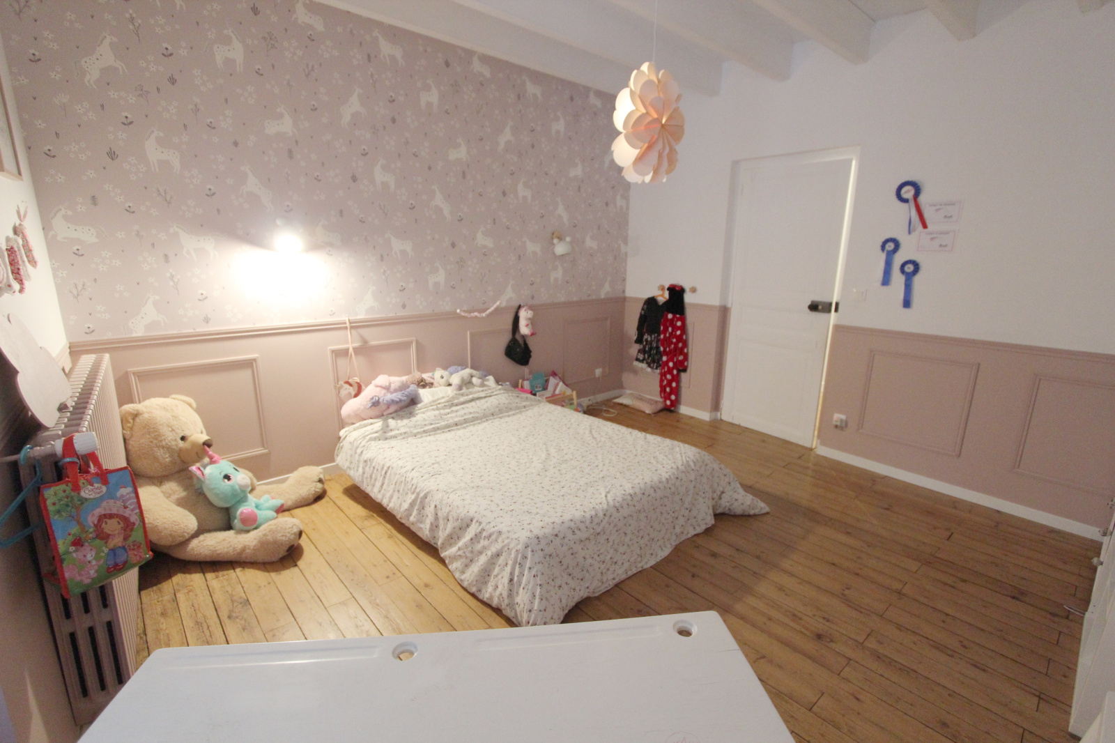 Au 1er étage : espace parent avec suite chambre dressing, WC indépendnt et salle de douche avec espace buanderie secondaire. Deux chambres et une deuxième salle d'eau avec WC