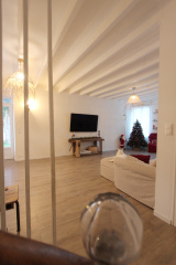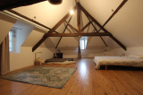 Au second : spacieuse pièce de vie ou chambre avec poutres apparentes et point d'eau.