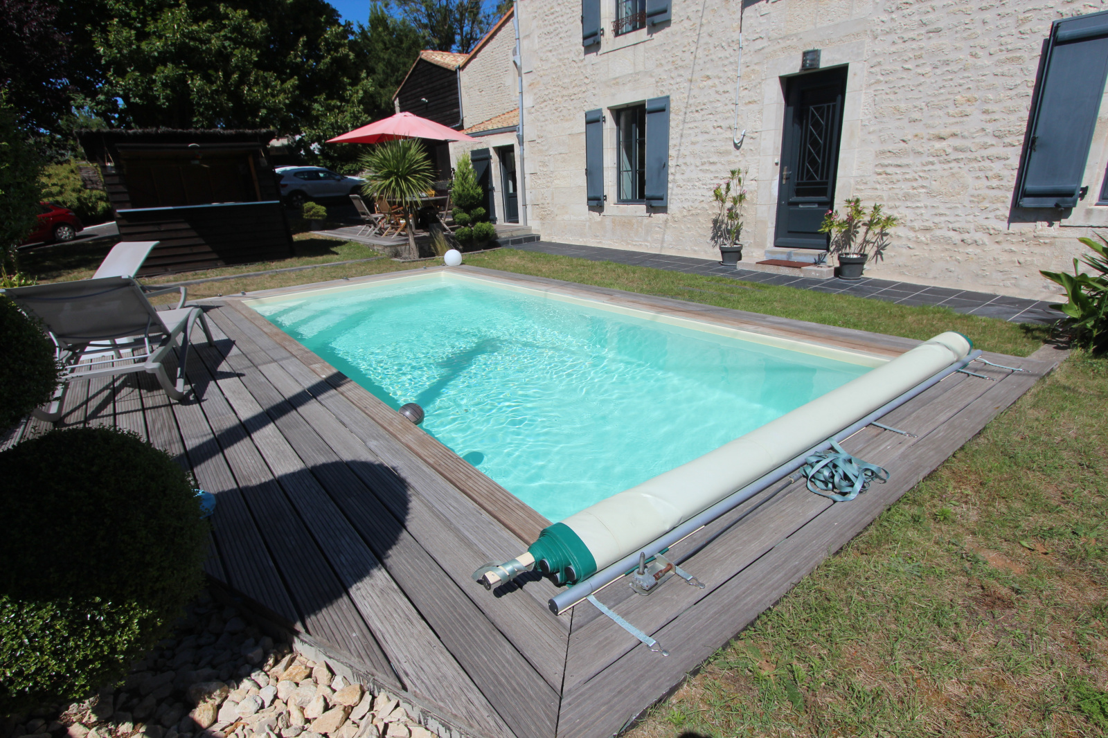 A l'extérieur : vous pouvez profiter d'un beau jardin clos et arboré agrémenté d'un pool house surplombant une piscine chauffée et sécurisée de 7 mètres sur 3 idéale pour profiter des beaux jours.
